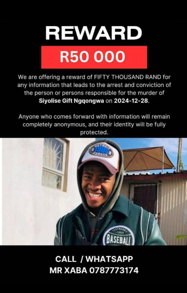 MTHATHA- Usapho lwakaNgqongwa linikezela ngembuyekezo yeR50 000 kubani na onothi eze ngaphambili nenkcukacha ezithe vetshe ngokwenzeka kunyana wabo uSiyolise Gift Ngqongwa.